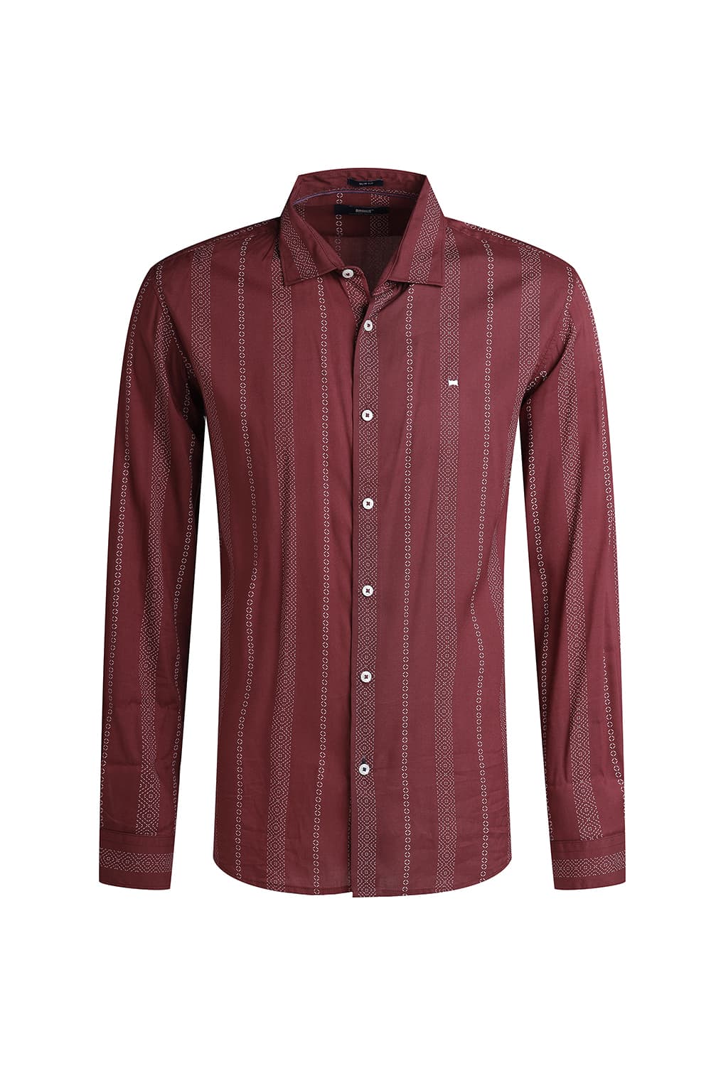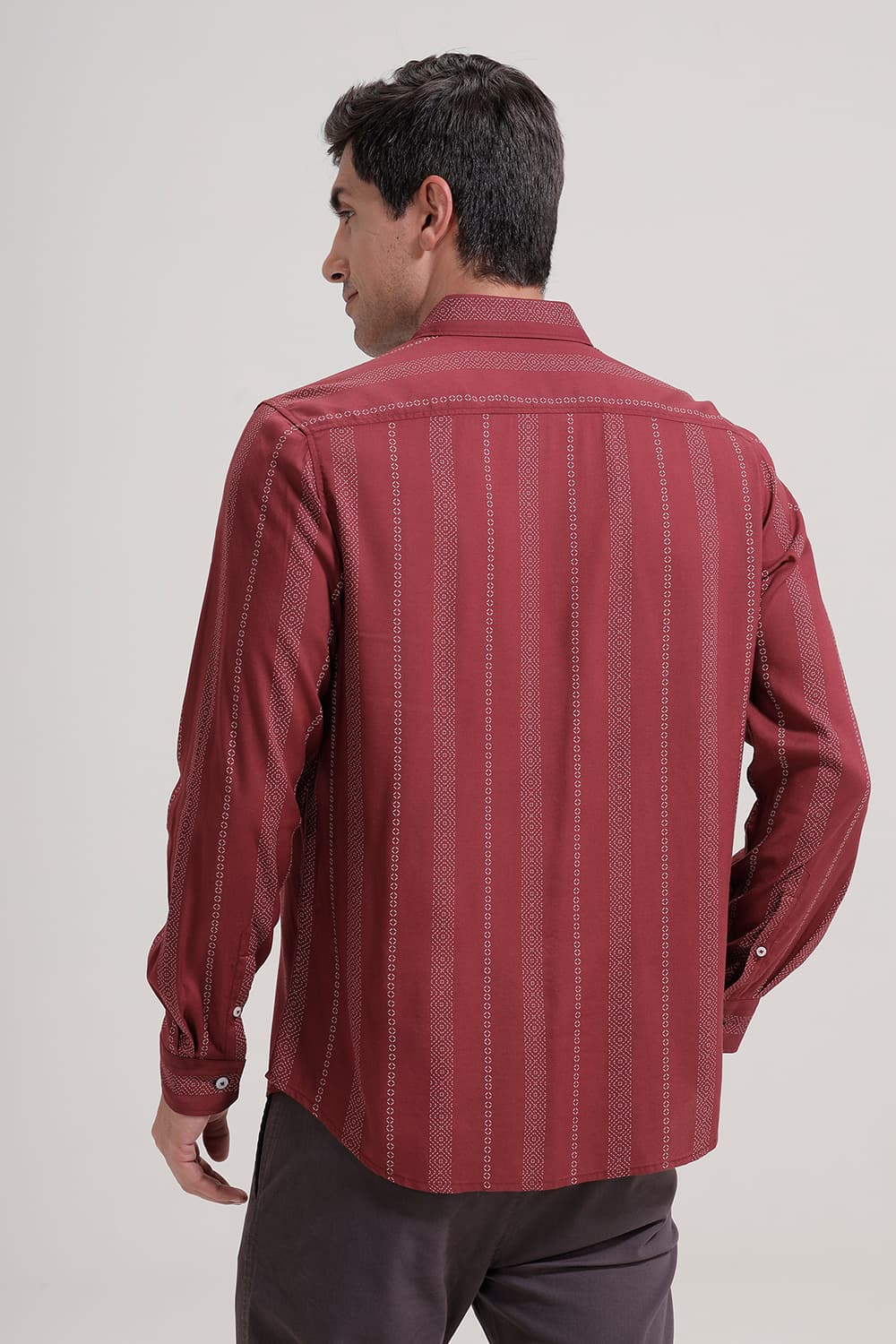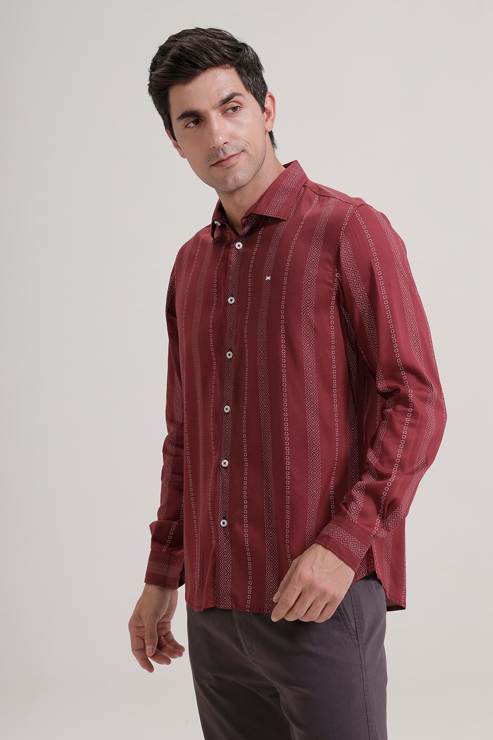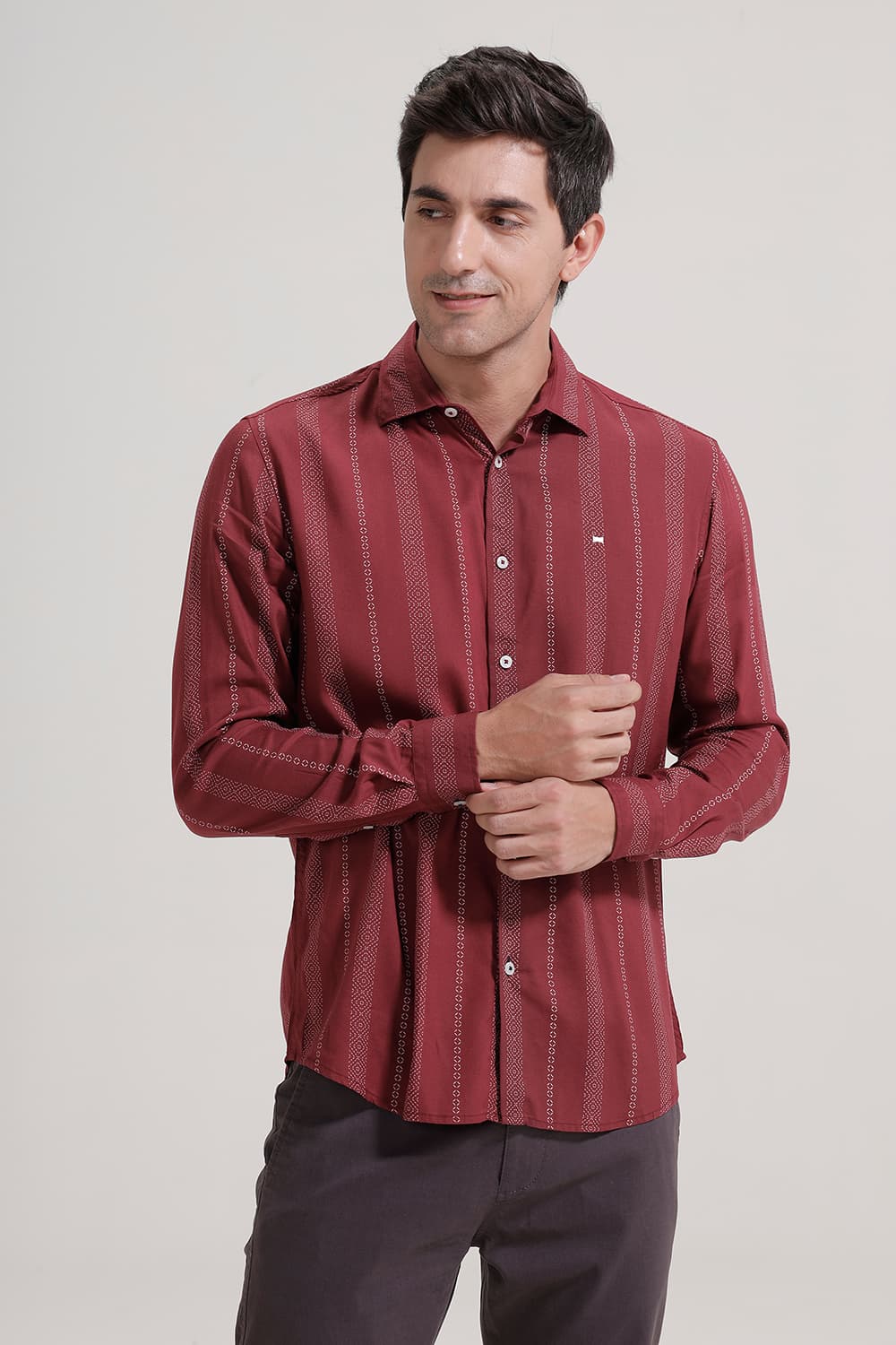 Meet Slim Fit Viscose Printed Stripe Shirt a versatile set crafted from 100% Viscose designed for everyday ease. It delivers Slim fit with a mid cut away neckline featuring a print finish. Available in Maroon and Mid Blue, it pairs effortlessly with denim, chinos, or sneakers for a clean, modern look. Lightweight and soft on skin, it drapes well and moves with you from morning to late night without losing shape. Wear it as a complete look or mix-and-match with solid staples to multiply outfits across workdays and weekends. An all-over print adds personality while staying understated and versatile. Easy care. True to size. Your go-to choice when you want effortless style without the effort.