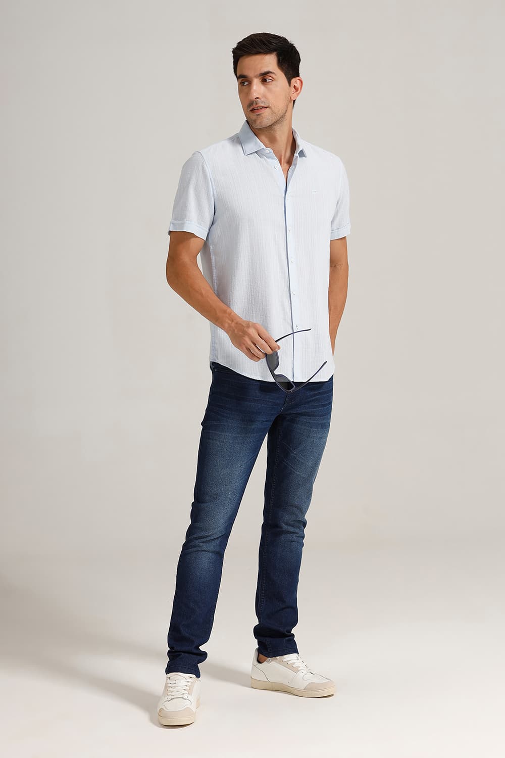 Meet Slim Fit Cotton Dobby Stripe Shirt a versatile set crafted from 100% Cotton designed for everyday ease. It delivers Slim fit with a mid cut away neckline featuring a stripes finish. Available in Beige, Grey, Light Blue, and Light Green, it pairs effortlessly with denim, chinos, or sneakers for a clean, modern look. Lightweight and soft on skin, it drapes well and moves with you from morning to late night without losing shape. Wear it as a complete look or mix-and-match with solid staples to multiply outfits across workdays and weekends. Easy care. True to size. Your go-to choice when you want effortless style without the effort.