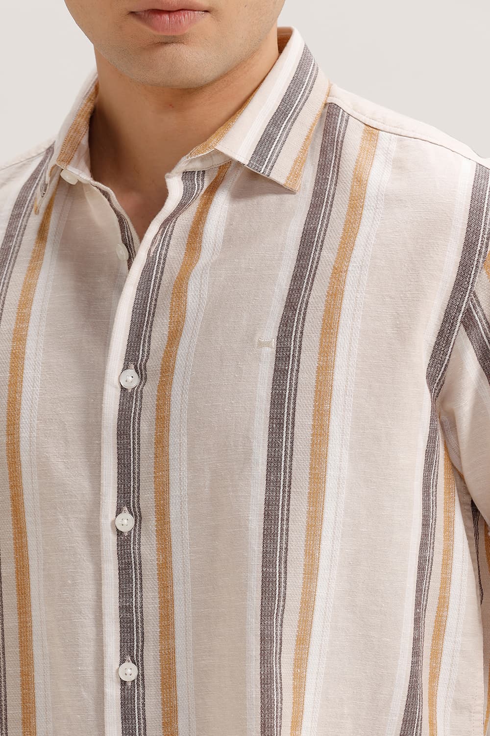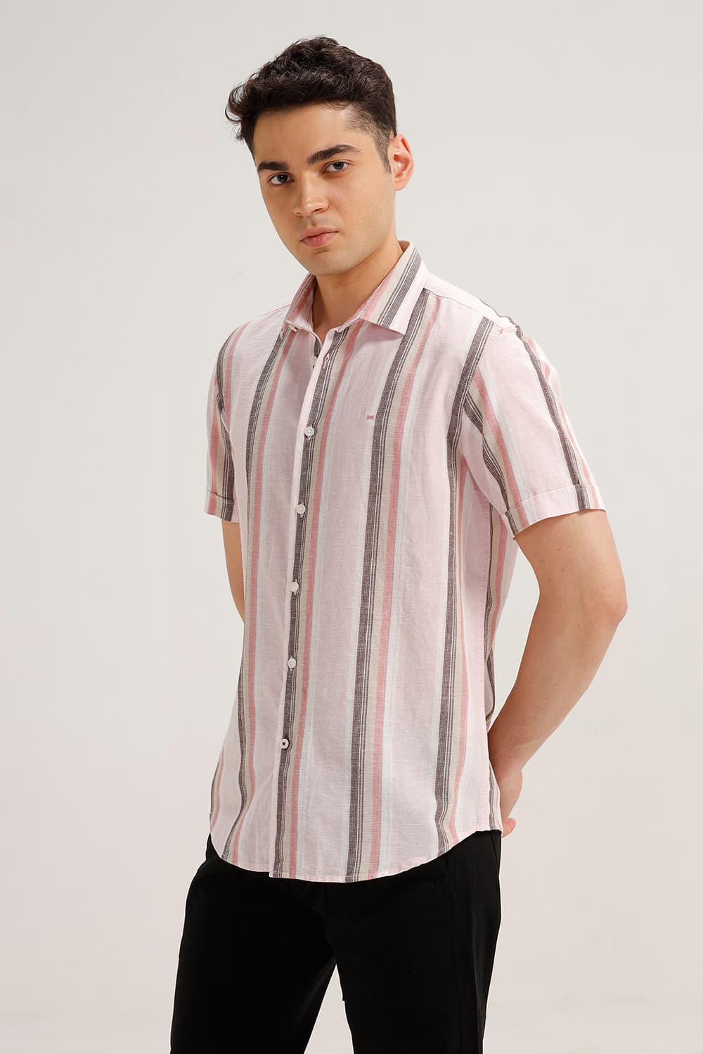 Meet Slim Fit Cotton Leno Dobby Stripe Shirt a versatile set crafted from 100% Cotton designed for everyday ease. It delivers Slim fit with a mid cut away neckline featuring a stripes finish. Available in Beige and Pink, it pairs effortlessly with denim, chinos, or sneakers for a clean, modern look. Lightweight and soft on skin, it drapes well and moves with you from morning to late night without losing shape. Wear it as a complete look or mix-and-match with solid staples to multiply outfits across workdays and weekends. Easy care. True to size. Your go-to choice when you want effortless style without the effort.
